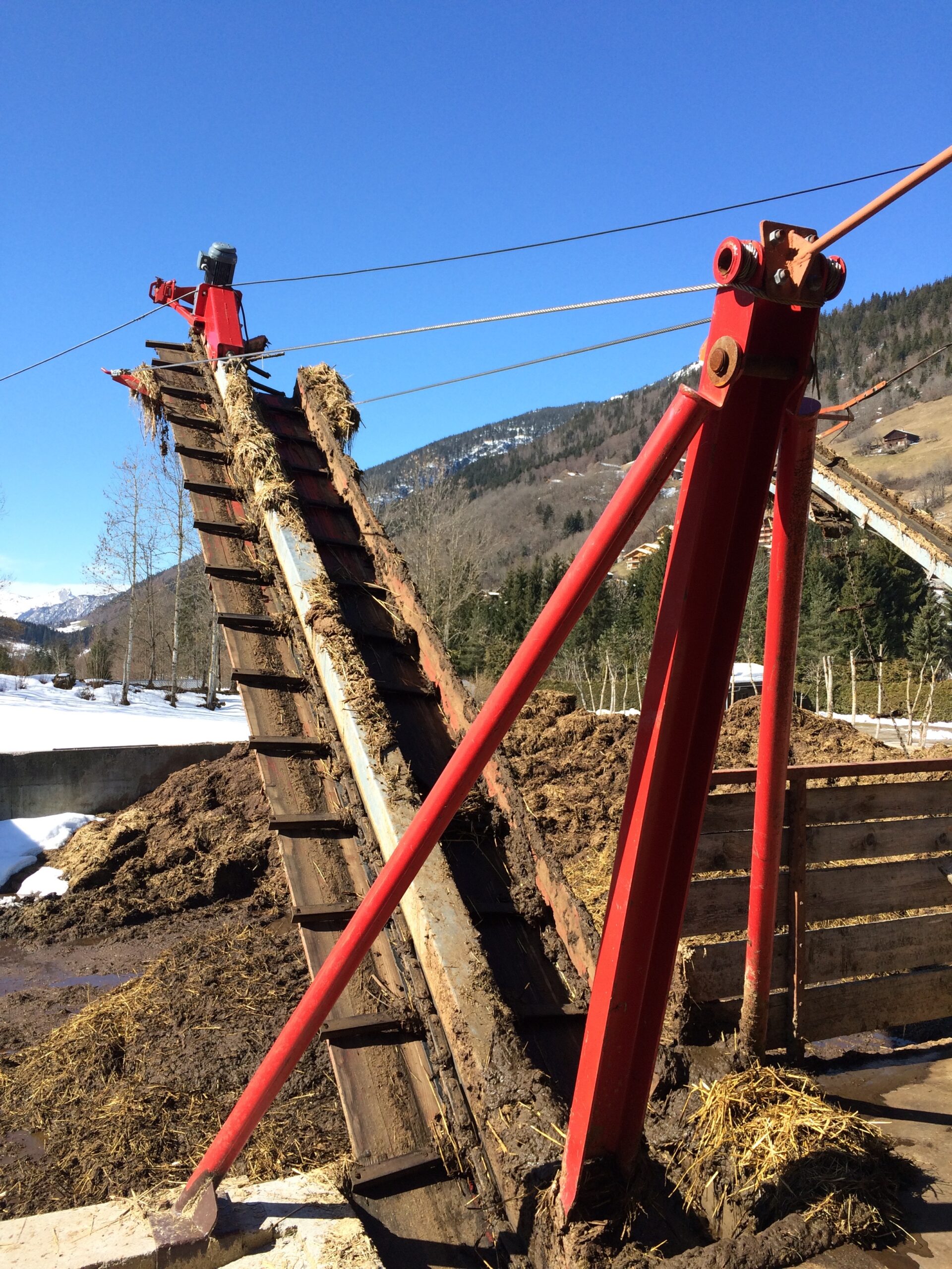Grâce à ses palettes renforcées, la chaîne de collecteur peut évacuer des quantités importantes de fumier et collecter plusieurs couloirs en série. C’est la solution pour convoyer le fumier où vous le désirez.